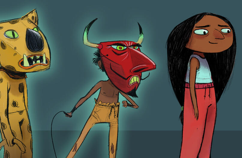 When I’m not drawing or painting, I enjoy working with my hands by making papier-mâché masks and carving little characters out of wood.